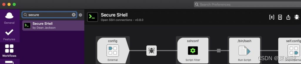 安装最新版即可,小编安装的Secure-SHell-0.8.0.alfredworkflow